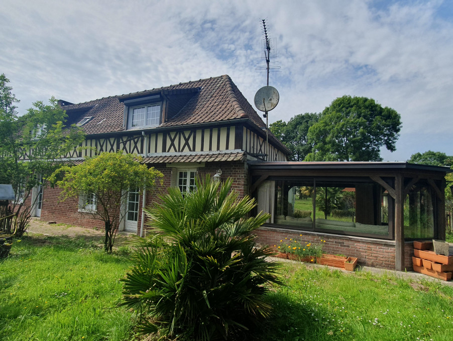 A 5 minutes du centre d' Yvetot, beaucoup de charme pour cette grande normande en briques et colombages sise sur un jardin de 2750 m2 offrant :
